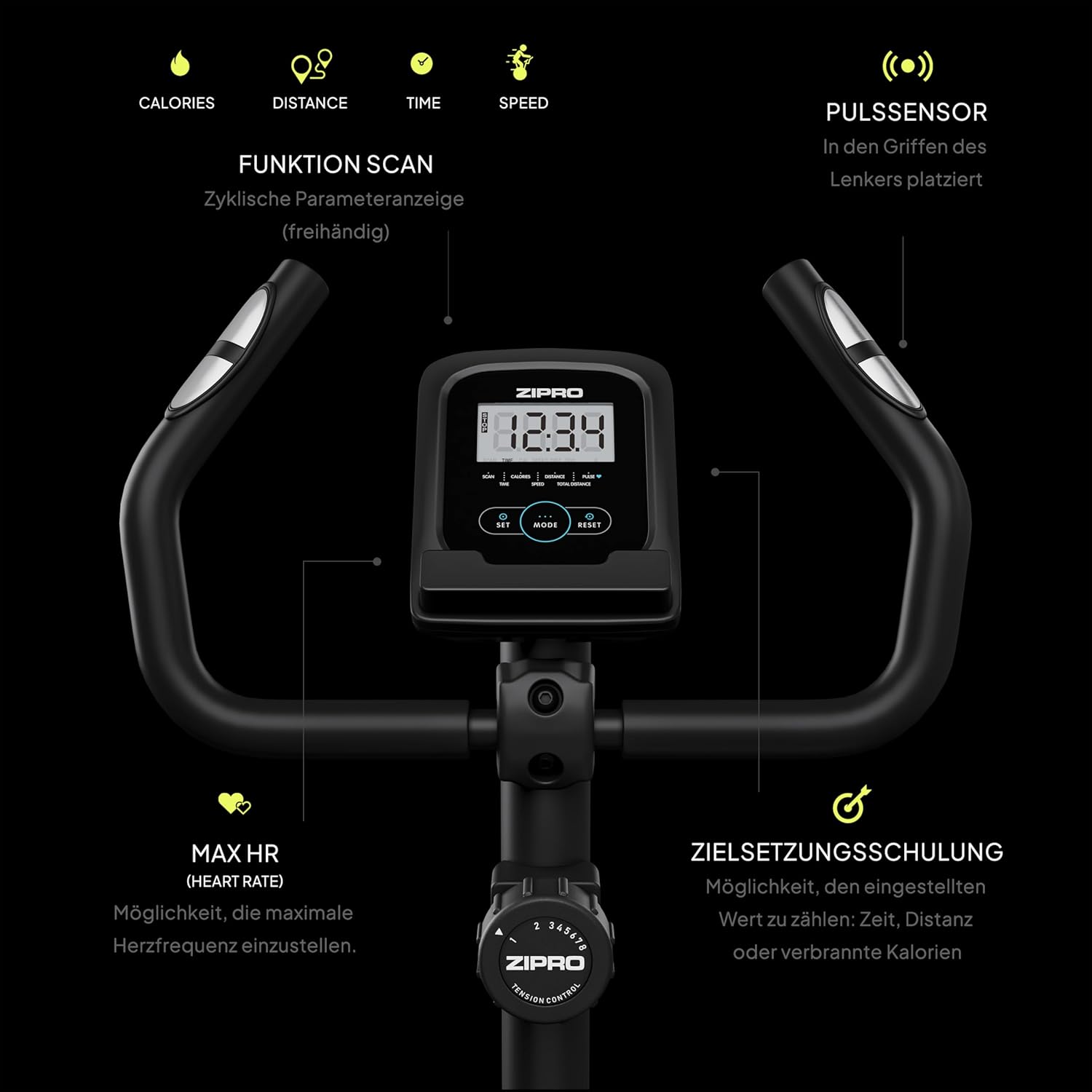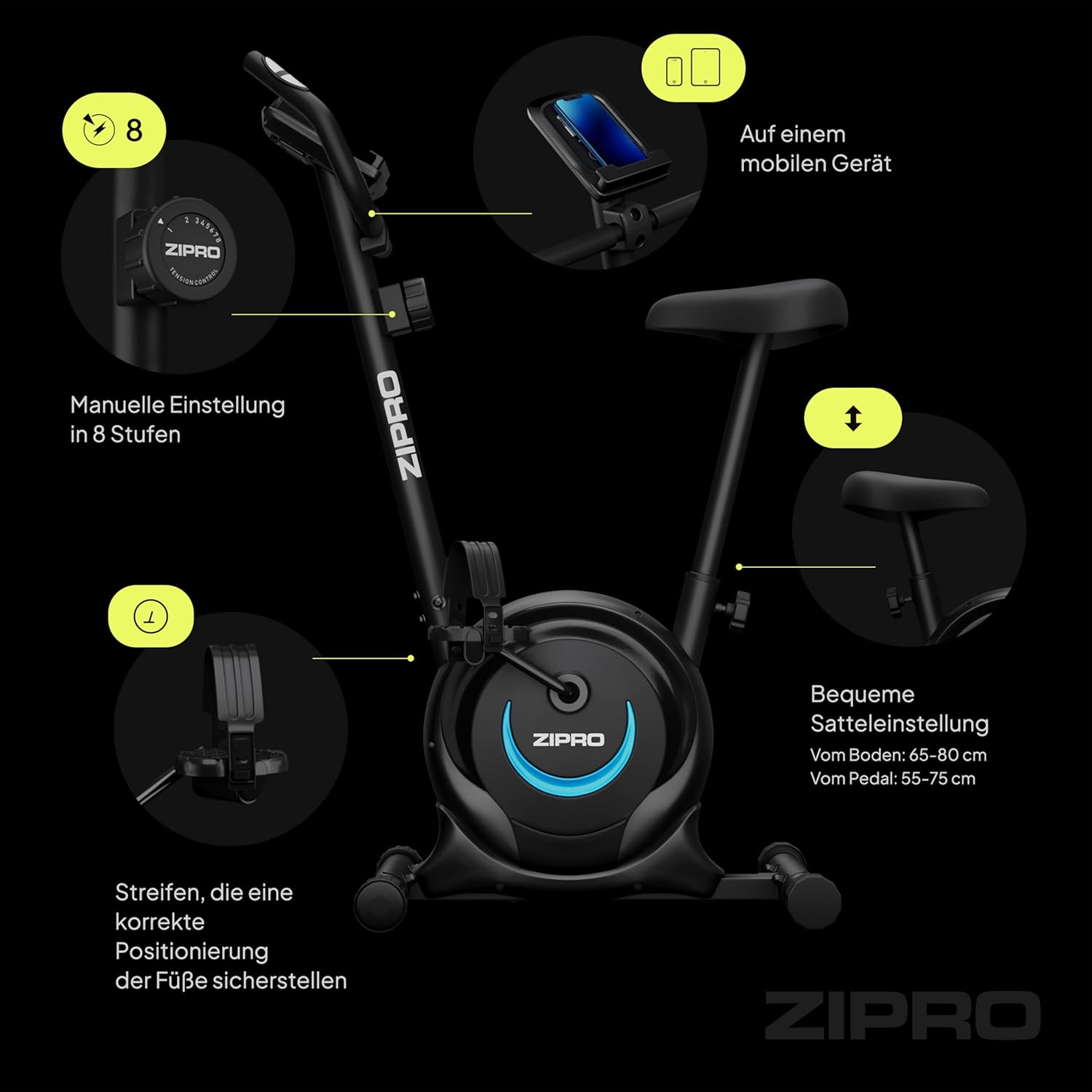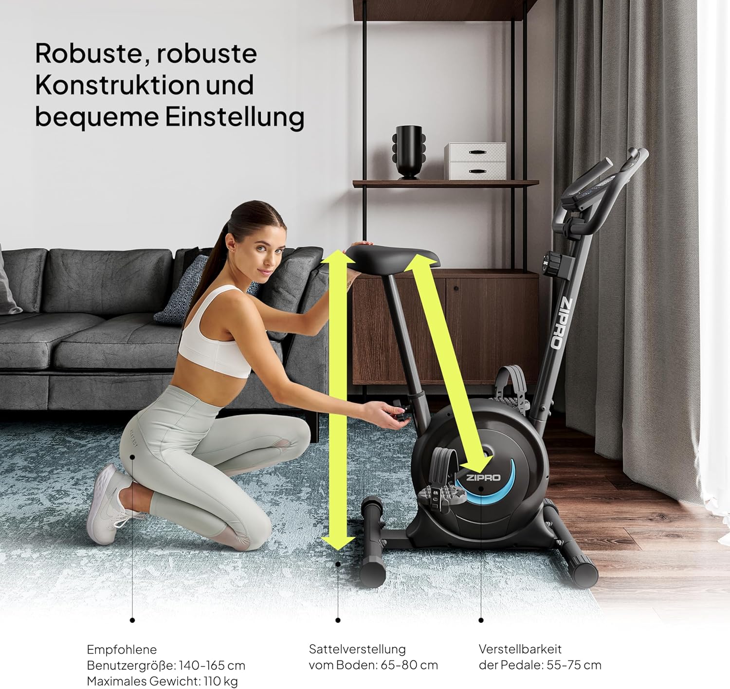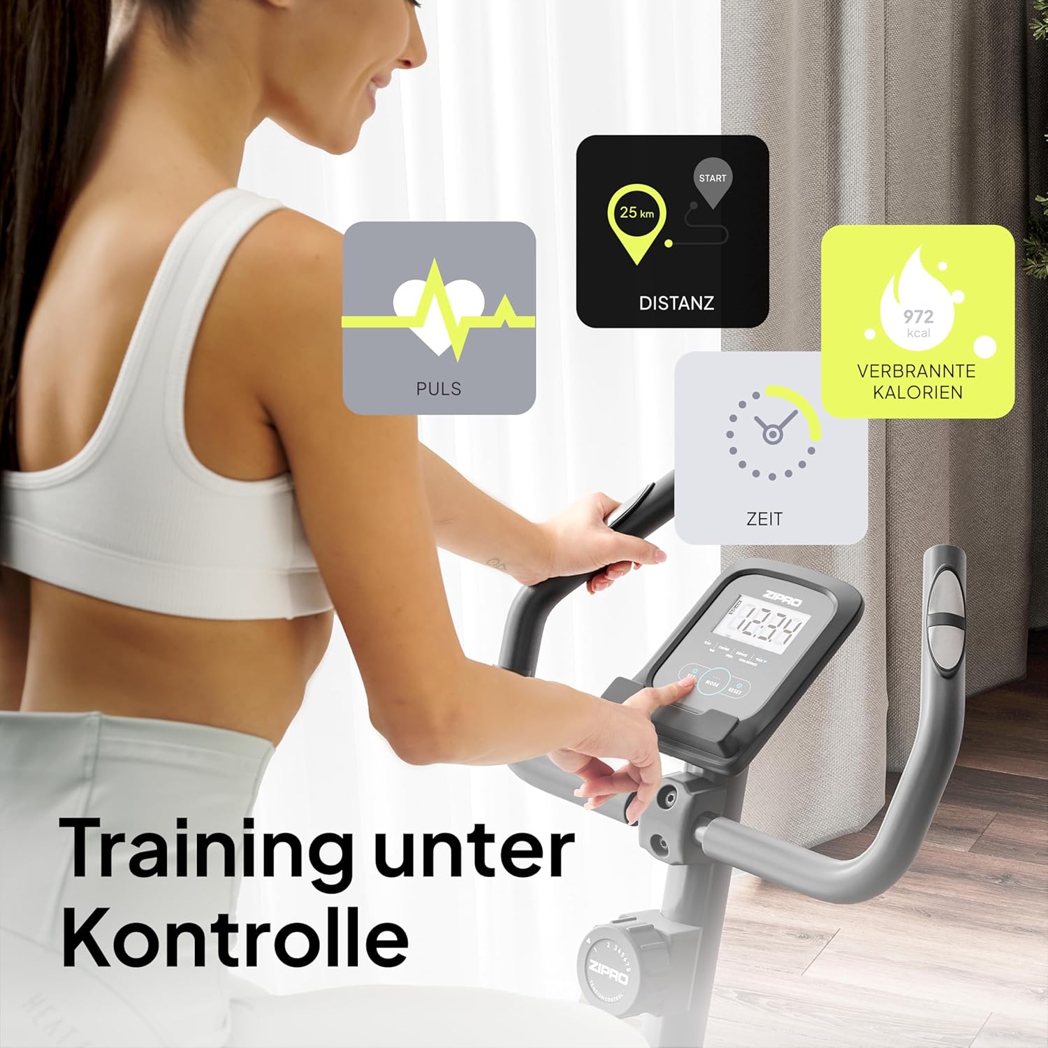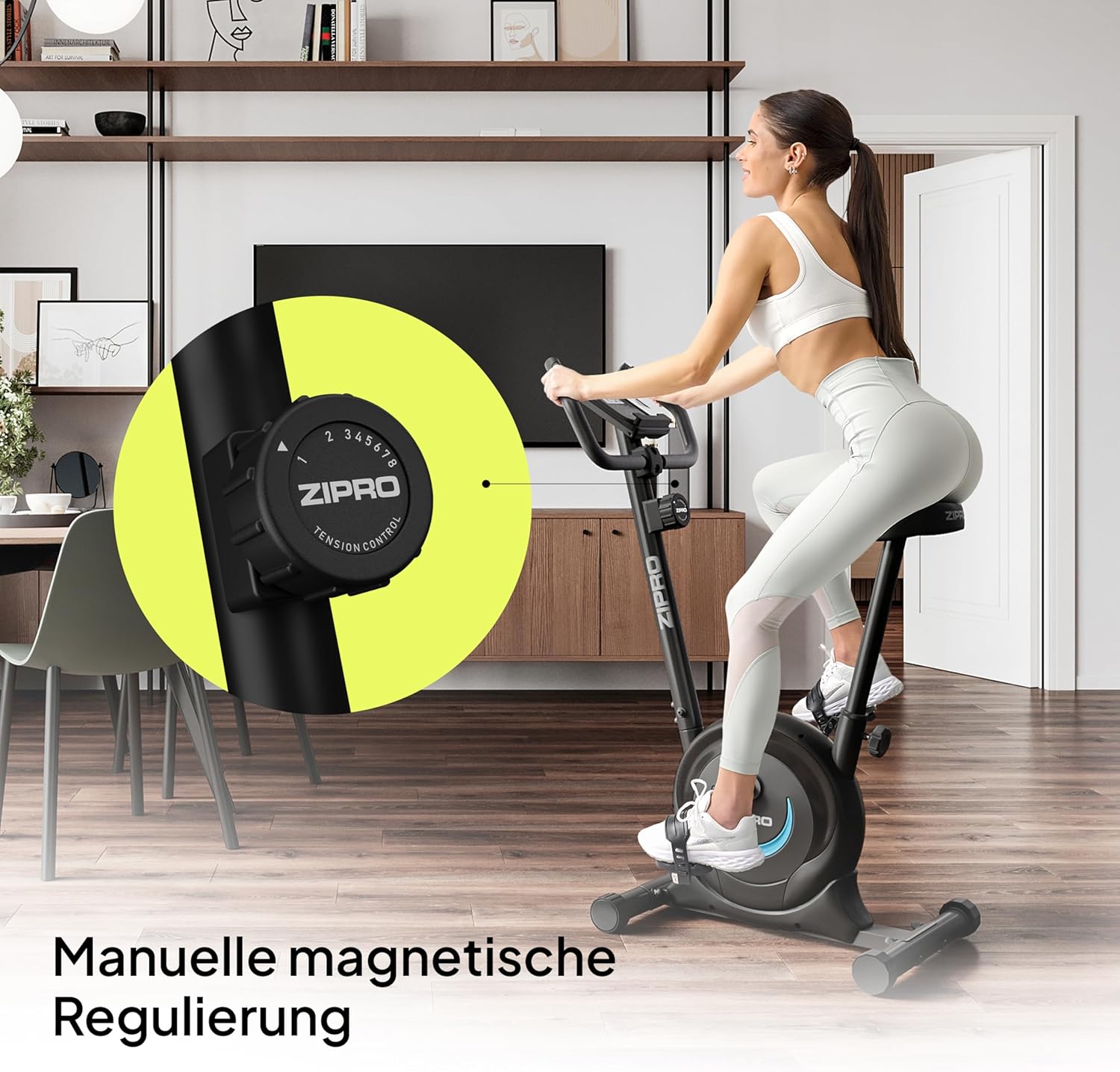 ZIPRO One S Heimtrainer Fahrrad – Magnetischer Widerstand, Leiser Betrieb, Verstellbarer Komfort, LCD-Display, Pulsmessung, Kalorienanzeige, Kompakt für Zuhause, Smartphone-Halter, Max 110kg