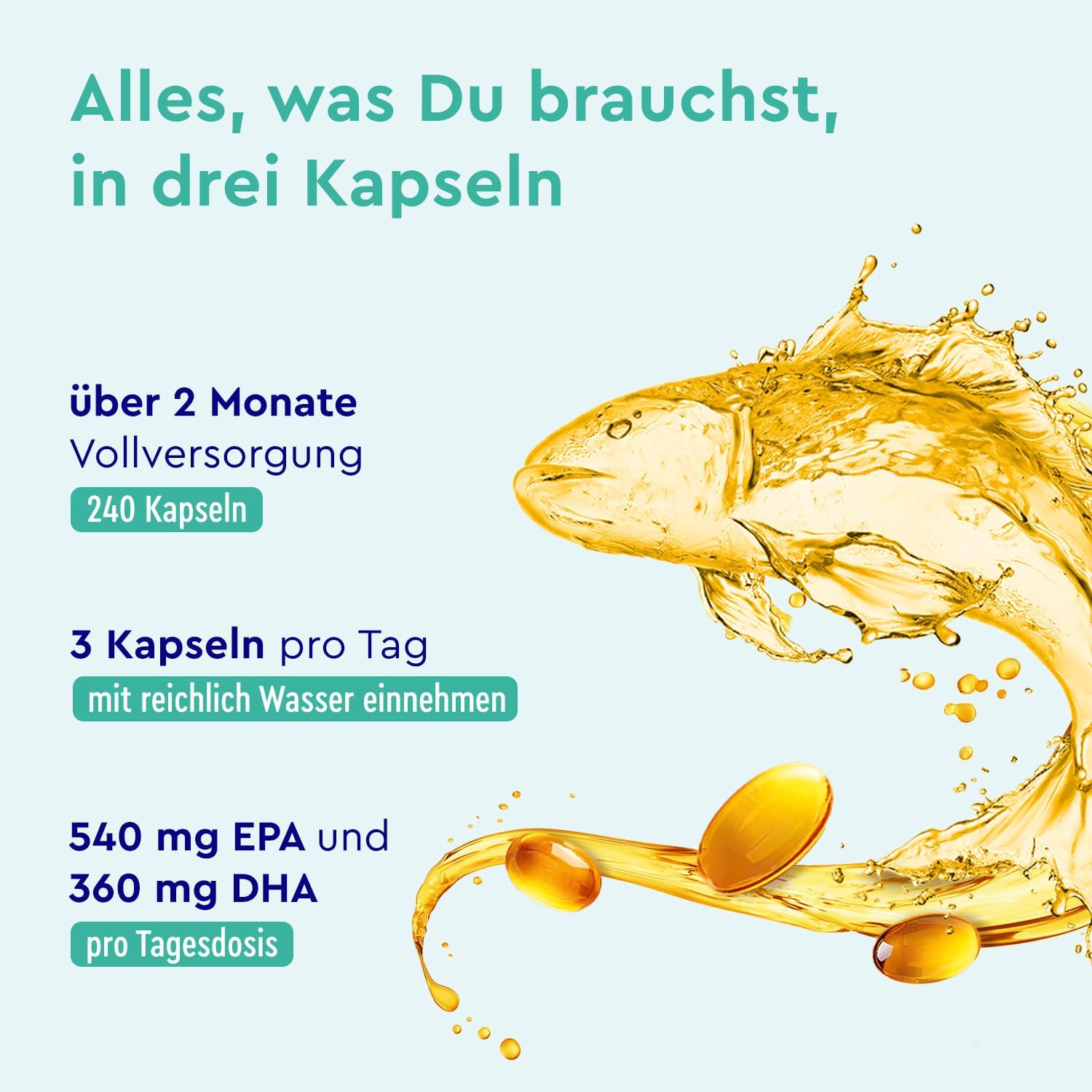 Be the first to review “Omega 3 Kapseln Hochdosiert – 3000mg Fischöl (Triglycerid-Form) – 240 Kapseln mit Vitamin E (Antioxidans) zur idealen Ergänzung von EPA & DHA – Reines Omega3 Fischöl – Laborgeprüft”